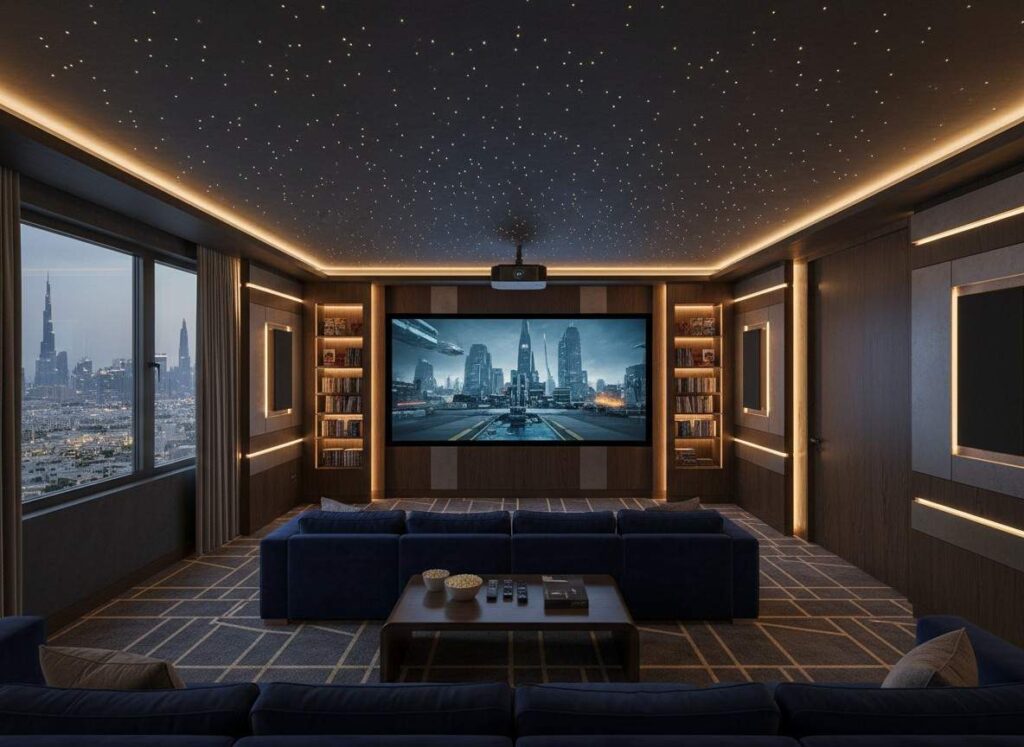 In the world of Dubai real estate, the “Smart Home” is no longer a luxury—it is the baseline. Today, the true differentiator for elite villas in the Palm Jumeirah, Emirates Hills, and Dubai Hills is a bespoke home cinema installation.