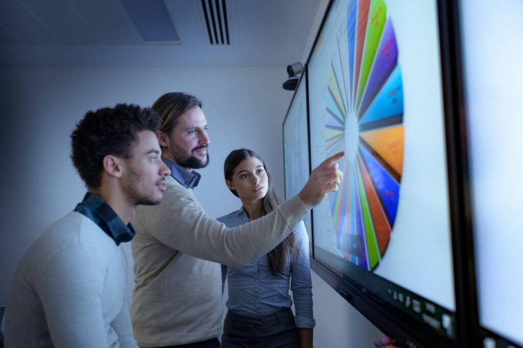 Schools and colleges benefit from interactive displays by enabling smart classrooms, increasing student engagement, and supporting modern teaching methods.
